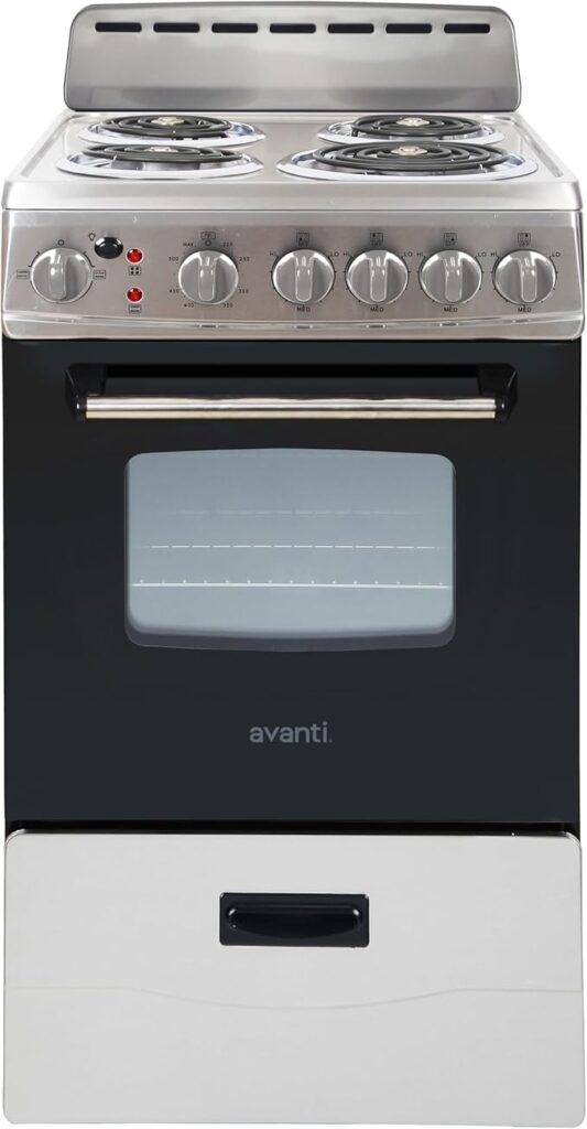 • 4 COIL BURNERS WITH SAFETY FEATURES: Includes three 6-inch and one 8-inch burners with chrome reflector bowls and temper…